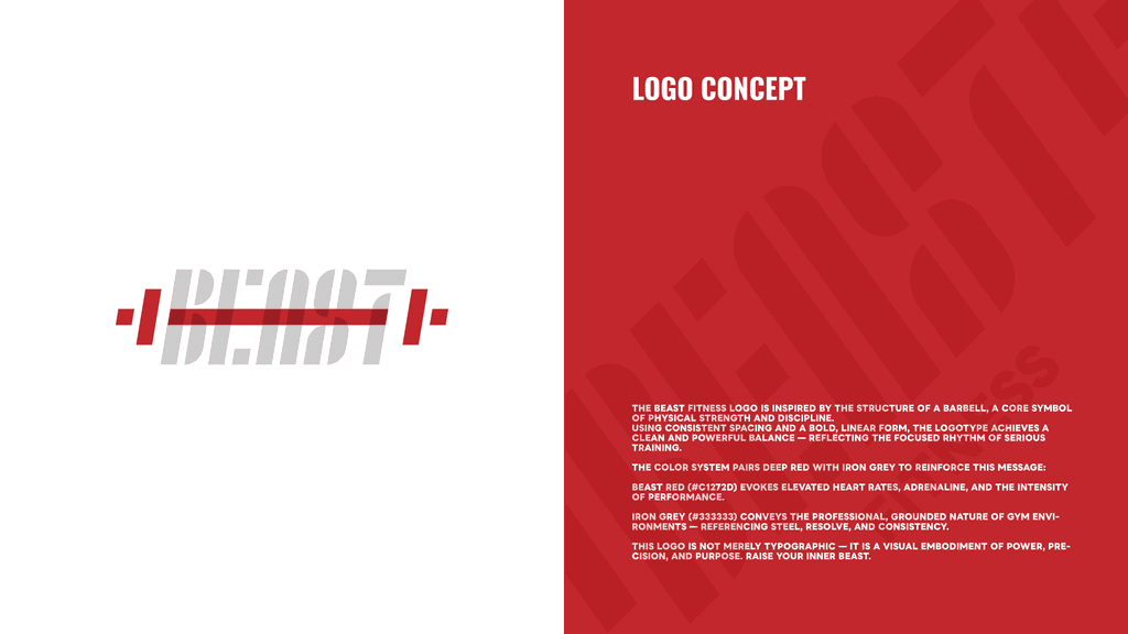 BEAST FITNESS – Brand Introduction BEAST FITNESS symbolizes strength, clarity, and discipline. The logo draws from the barbell’s form, with bold geometry and even spacing that reflect the focused rhythm of serious training.