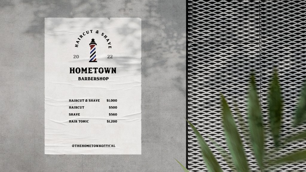 Hometown Barbershop Logo Design Established in 2022 in New Taipei City, Hometown Barbershop set out to craft a brand identity rooted in personal heritage. The owner envisioned a logo that would pay homage to their hometown of Pingtung, capturing both nostalgia and pride.